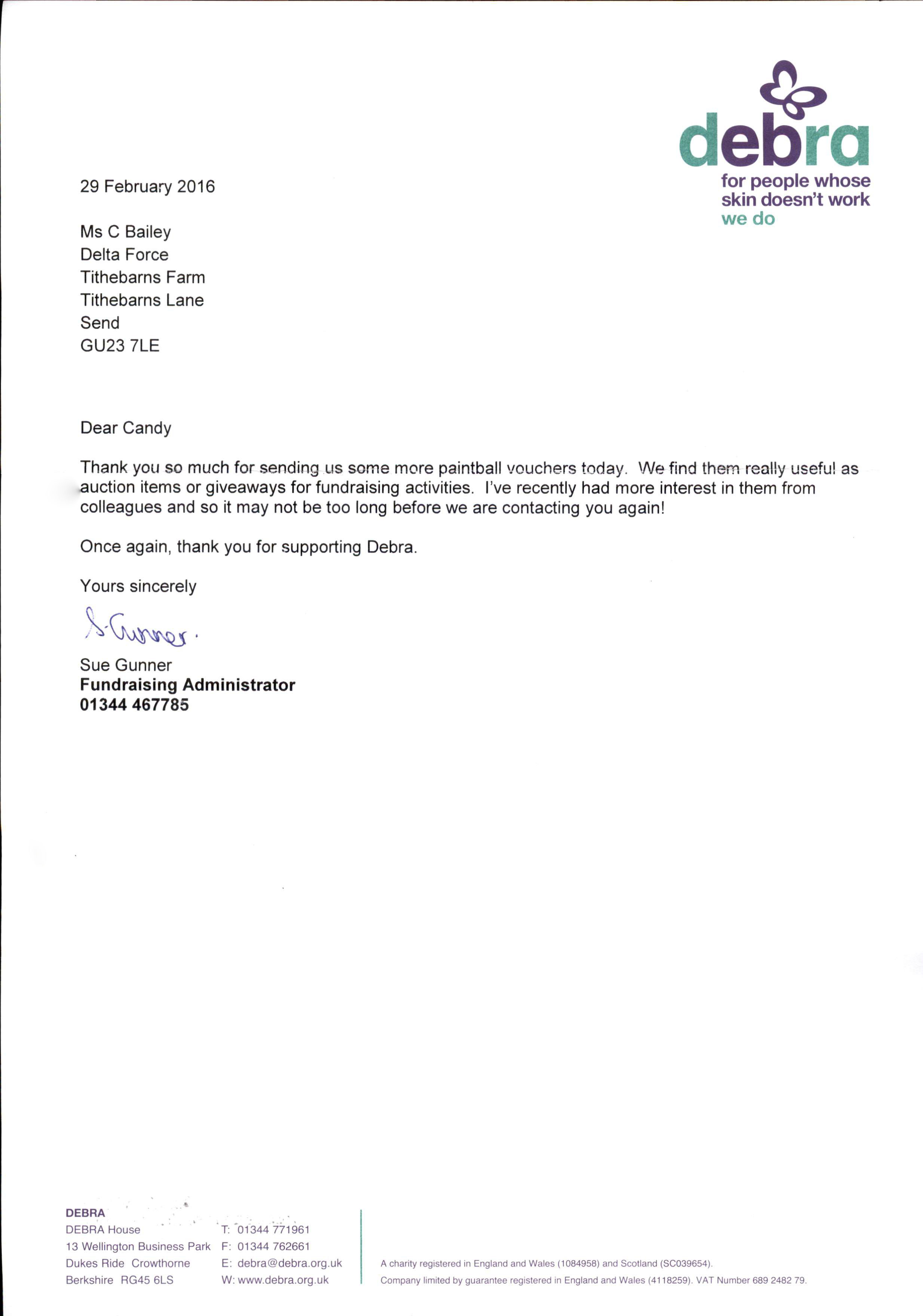 Thank you so much for sending us some more paintball vouchers today. We find them really useful as auction items or giveaways for fundraising activities; I’ve recently had more interest in them from colleagues and so it may not be too long before we are contacting you again!