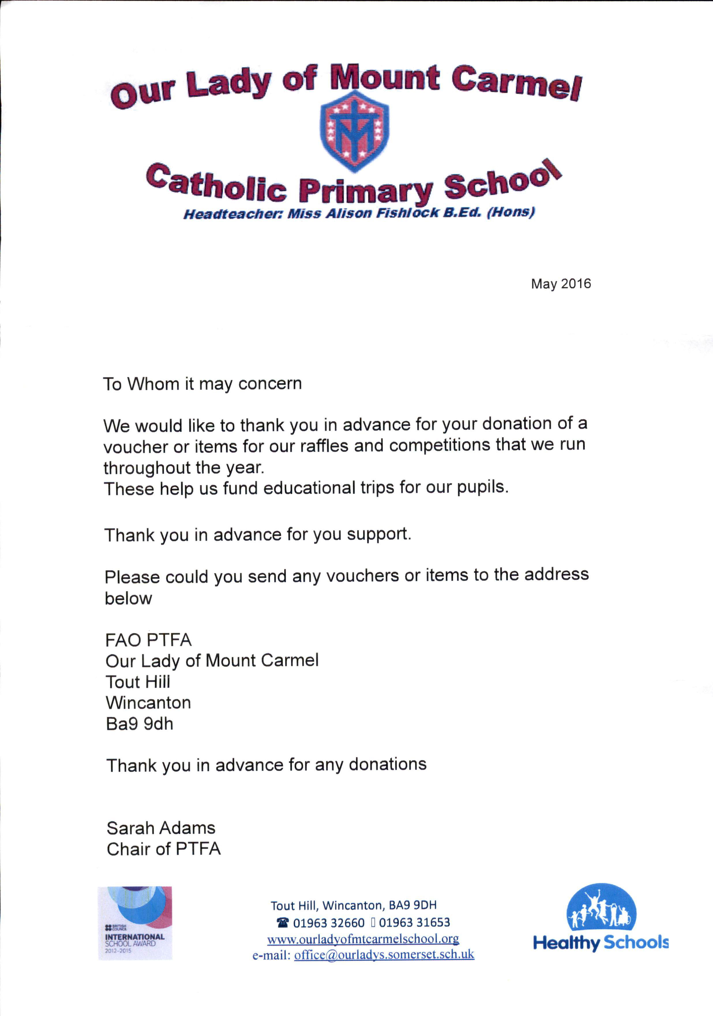 We would like to thank you in advance for your donation of a voucher or items for our raffles and competitions that we run throughout the year.