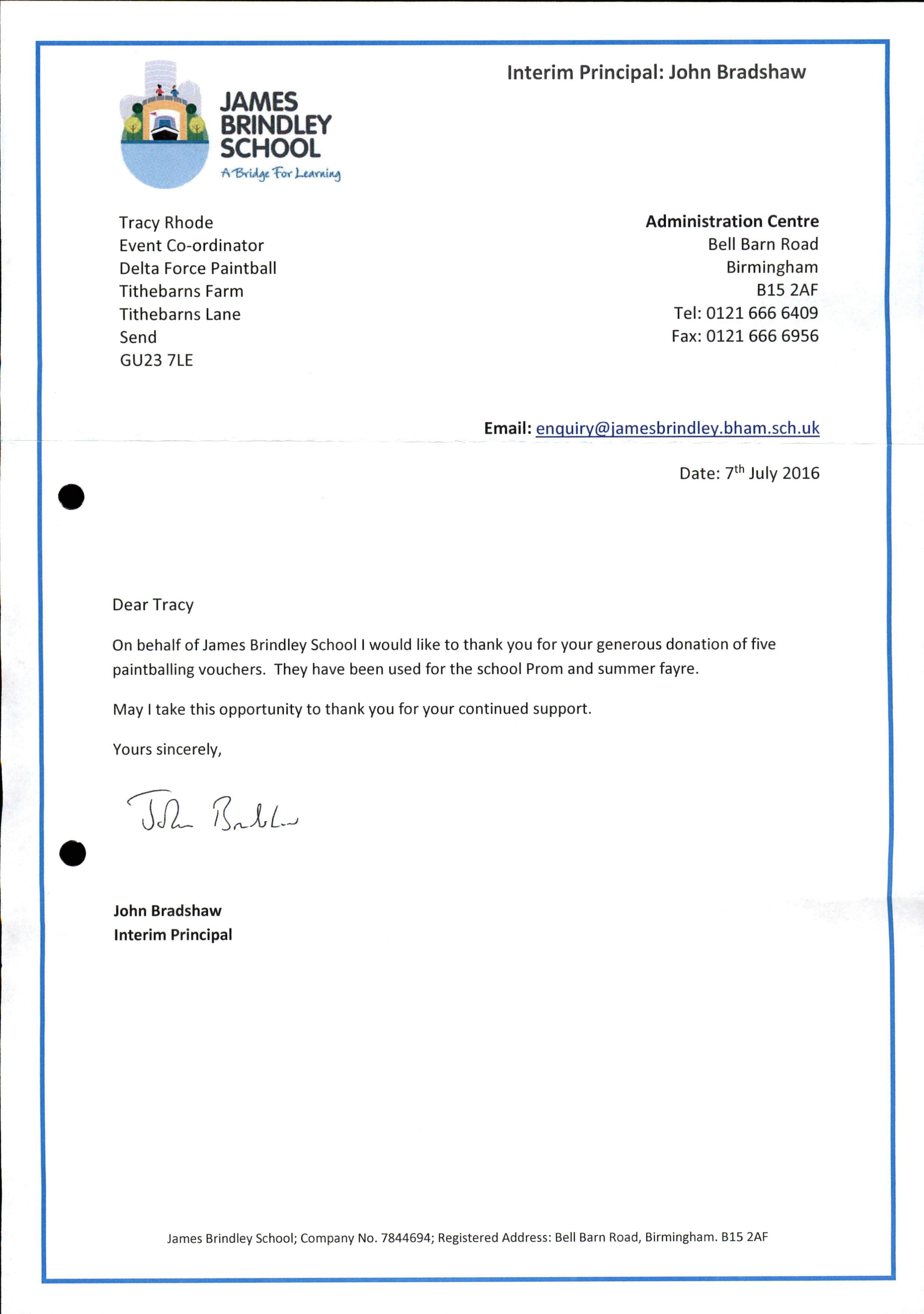 On behalf of all us at THE J’s Hospice I’m writing to thank you very much for your kind donation of five complimentary Delta Force fundraising paintball tickets, this will make a great prize at a forthcoming event and generate much needed money for our patients.