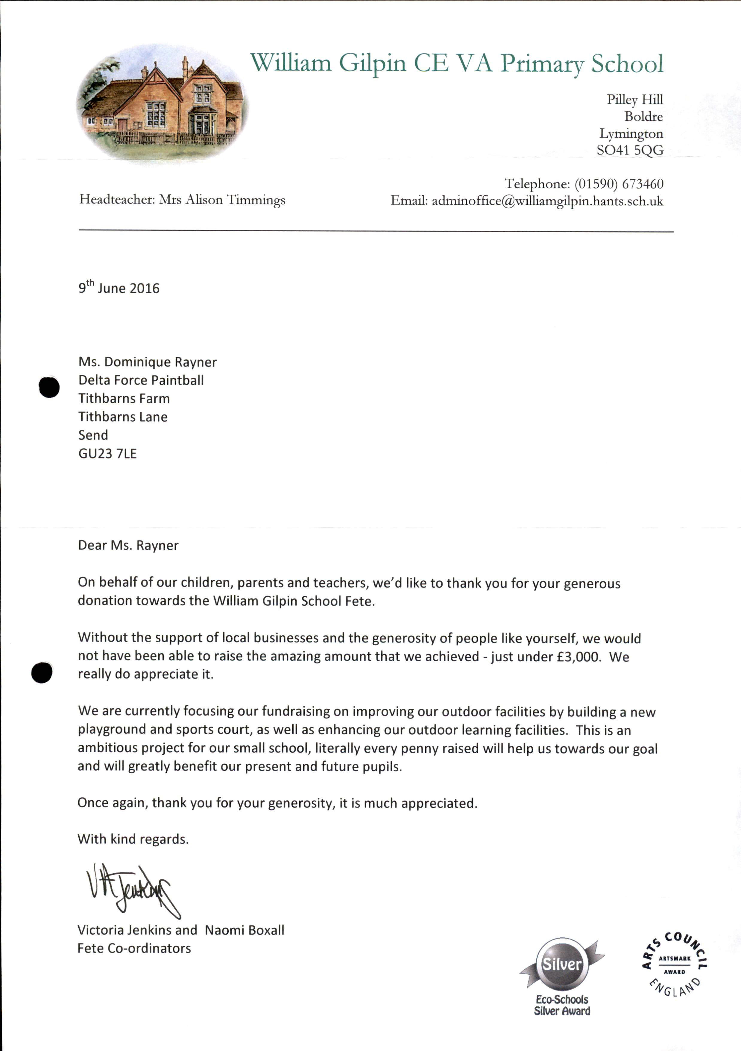 On Behalf of our children, parents and teachers, we’d like to thank you for your generous donation towards the William Gilpin School Fete.